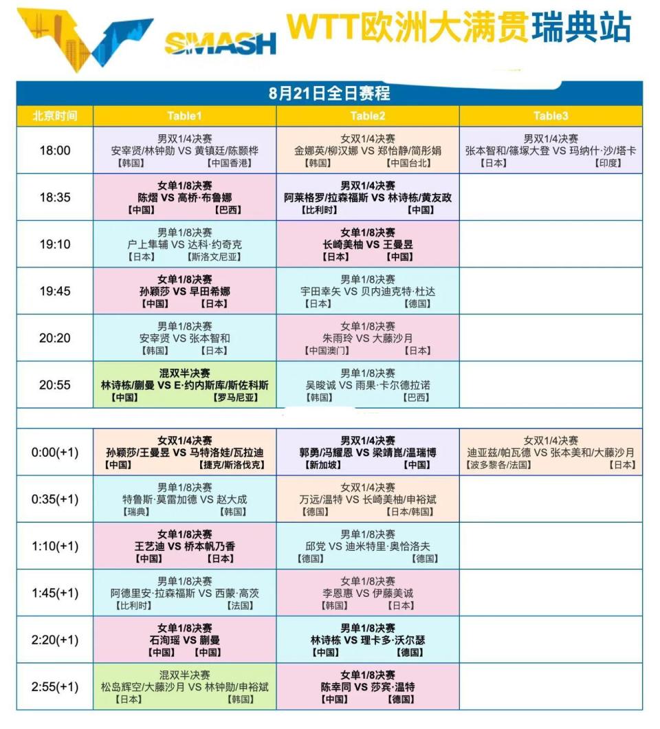 中国选手林诗栋将于北京时间凌晨2:30迎战瑞典选手沃尔森,成为国乒在该阶段的唯一代表。